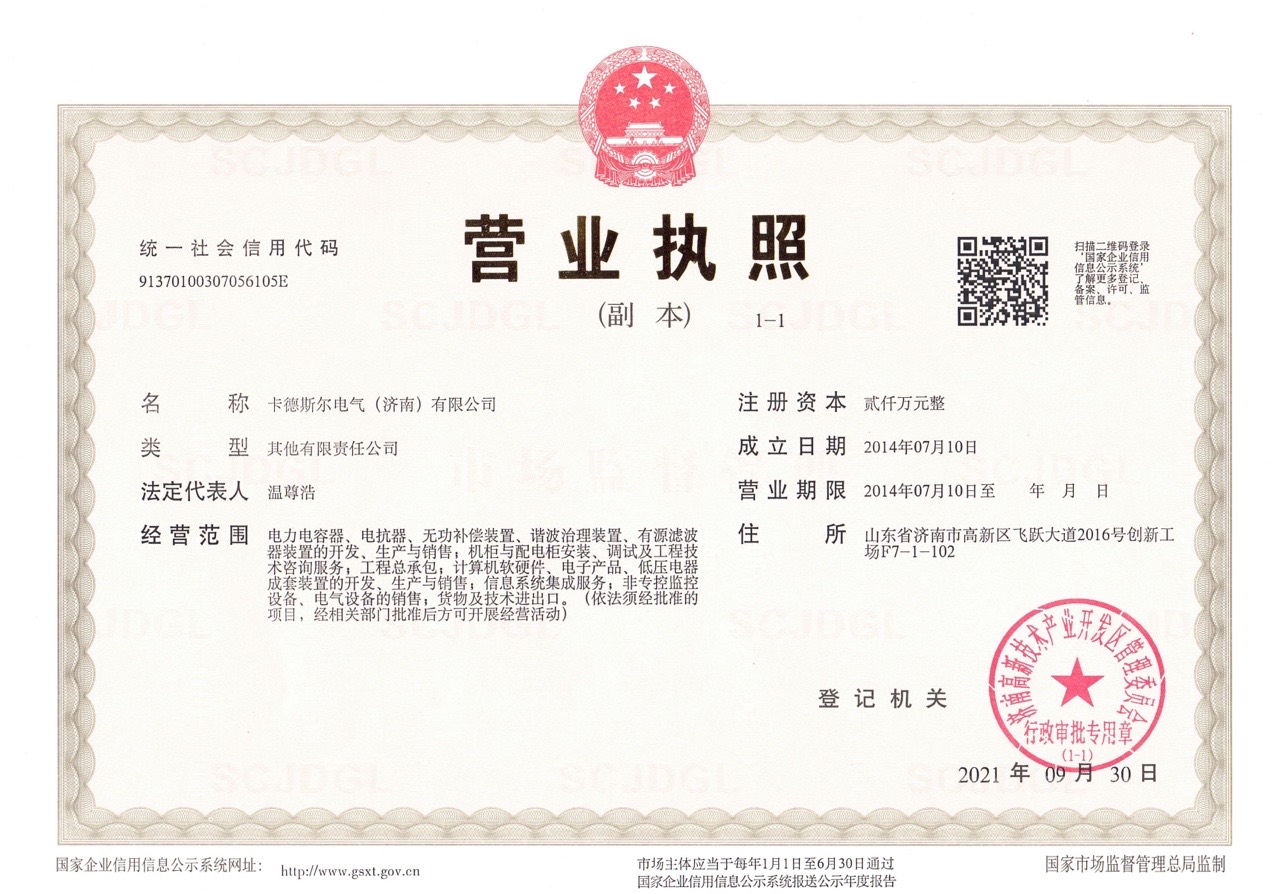 卡德斯爾電氣(濟南)有限公司 是在電力系統能效優化、電能質量產品領域的一個中型國際企業,自成立以來超過80年的應用經驗。